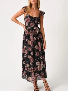 Women's printed holiday dress with shoulder floral print
